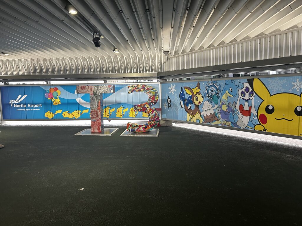 成田国際空港の第3ターミナルまで歩く途中にはポケットモンスターのディスプレイのようなものがたくさんあり、これは昨年と同じだが内容は変わっているような気もする。